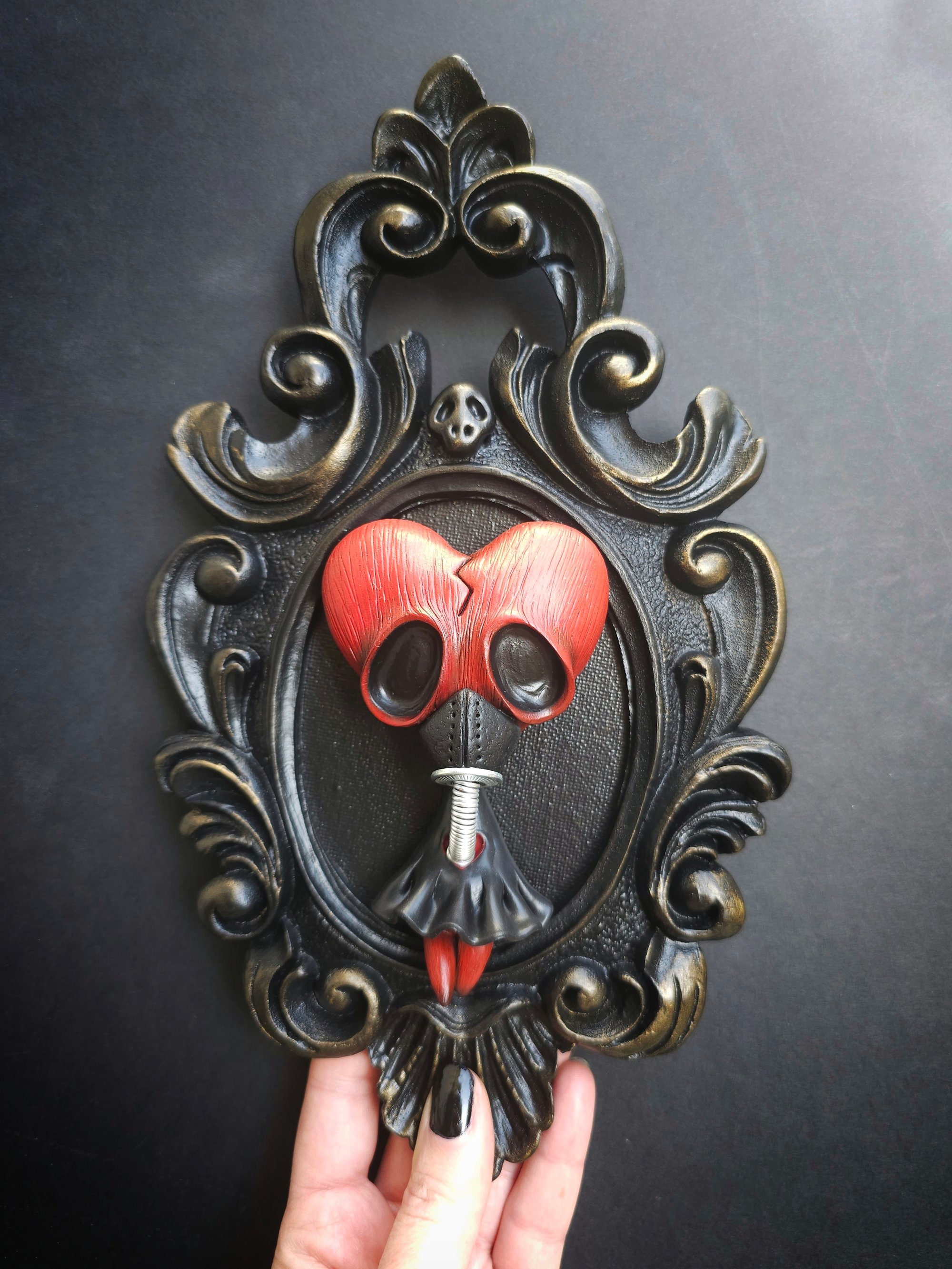 Masked Heart creature made of clay